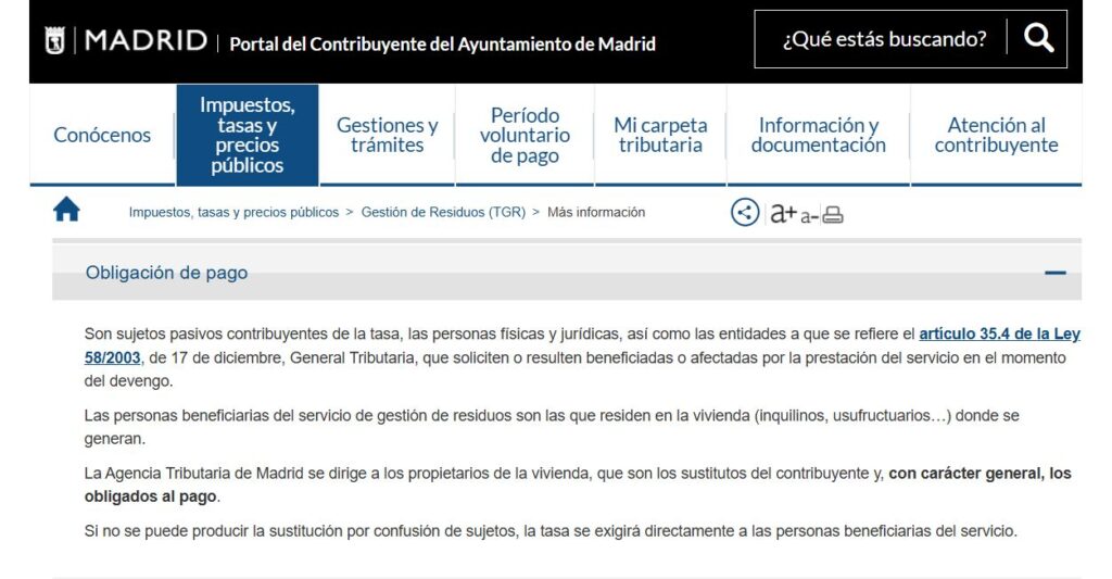 “El Real Decreto Legislativo 2/2004, de 5 de marzo, por el que se aprueba el texto refundido de la Ley Reguladora de las Haciendas Locales, establece en sus arts. 23 y 20.4 que el sujeto pasivo de la tasa por la recogida de residuos sólidos urbanos, tratamiento y eliminación de estos, en concepto de contribuyente, lo es la persona física o jurídica que resulte beneficiada por el referido servicio.